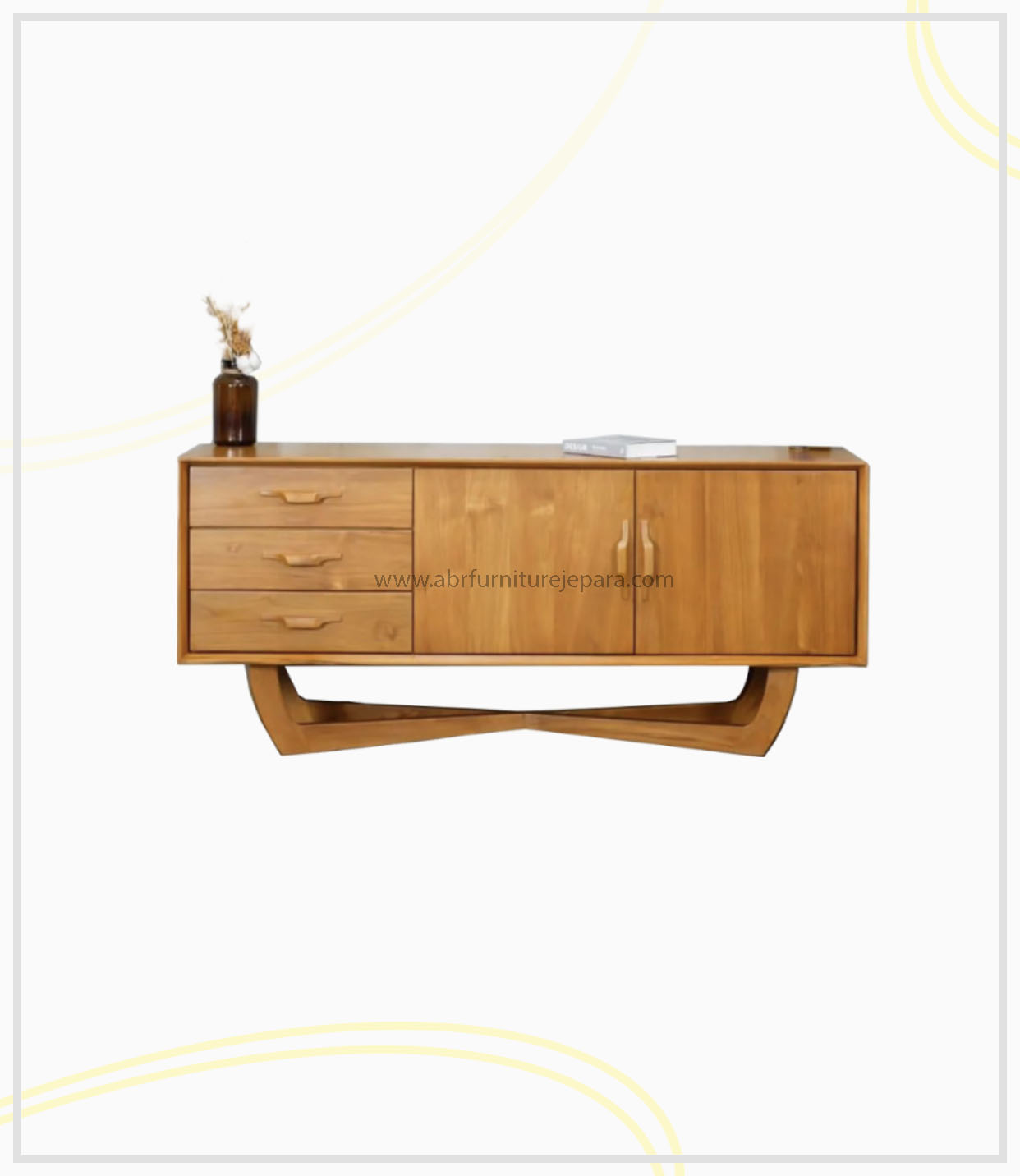 This elegant appearance with its multifunctional nature is definitely the furniture you have been looking for all this time. It is strong and durable to fill this family room, of course it is made from Perhutani TPK Teak Wood. It doesn’t stop there, the close pore finishing with natural color is what makes this TV table very charming. Close pore itself is a finishing technique in which the process of coating wood closes the pores which results in a smooth and even surface.